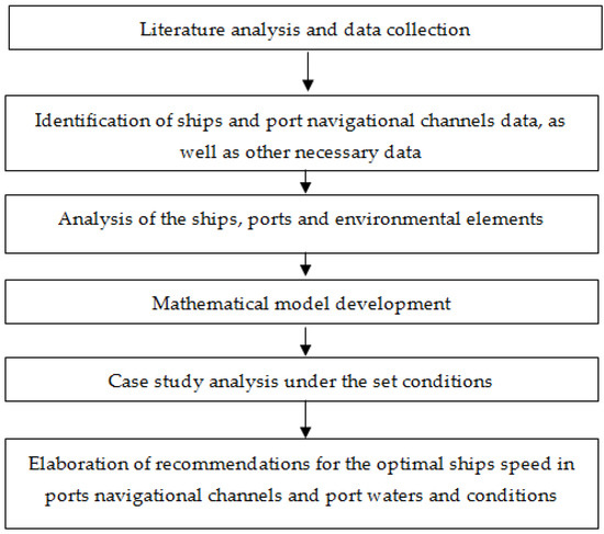 In order to prepare the methodology, an analysis of the available situation and the literature was carried out, which allowed an overview of the situation of ships entering ports to be analyzed, including navigational safety, use of the necessary fuel and the influence of shallow water on the sailing characteristics of ships. The movement of ships in port channels and waters, the reduction in emissions from ships in port channels and waters, etc., have also been studied. The necessary data were collected from literature sources and observations of real ship sailing conditions in port channels and port waters, as well as experimental data obtained from VTSs (vessel traffic systems) operating in ports, from shipping companies and from calibrated full mission simulators.