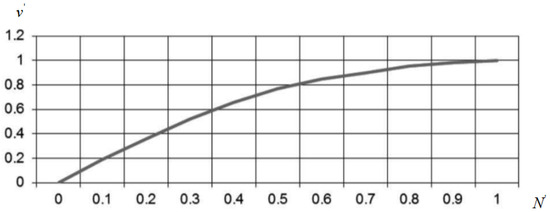 The relative speed of the ship () as a function of the relative power of the ship’s engine(s) ().