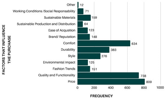 Factors influencing the purchasing decisions of new textile items, expressed in frequency of choice.