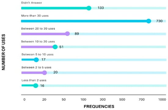 These collected data were subjected to frequency analysis using IBM® Statistical Package for Social Sciences (SPSS, version 29.0.0.0 (241)) (Windows, IBM, Armonk, NY, USA) [] to examine the distribution of responses across various categories. Only participants who finished the questionnaire were considered, which led to the exclusion of 30 participants. Those participants were eliminated before the frequency analysis process. The result was as follows.