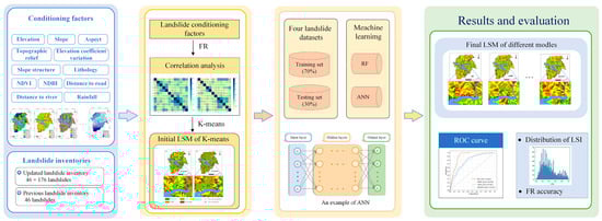 - Result comparison: The LSP results are compared using ROC curves, FR accuracy, and the distribution pattern of the landslide susceptibility index (LSI), then the uncertainty of landslide susceptibility modeling is explored.
