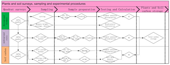 The height, density, coverage, and species number of plants were measured in a 1 m × 1 m quadrat. Herbs were cut flush with the ground, weighed, and dried to obtain the dry weight. Then, the samples were crushed using a laboratory mill 3100 (machine type: Perten), passed through a 0.149 mm sieve, and stored until further use.