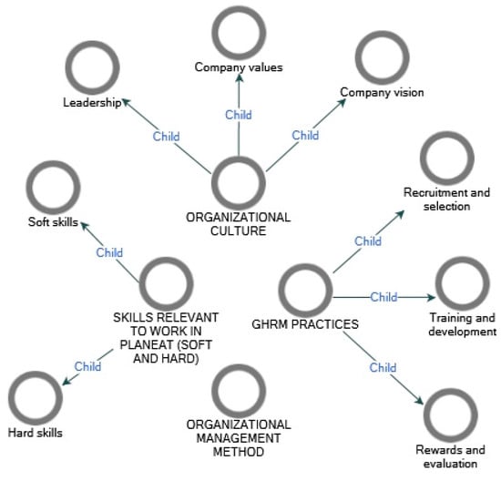 The results will be described in the following four sections, corresponding to the four main themes that emerged through the thematic analysis of interviews: organizational culture, skills relevant to work at Planeat (soft and hard), GHRM practices, and company organizational management method (see Figure 1). Categories and codes for each theme will also be reported.