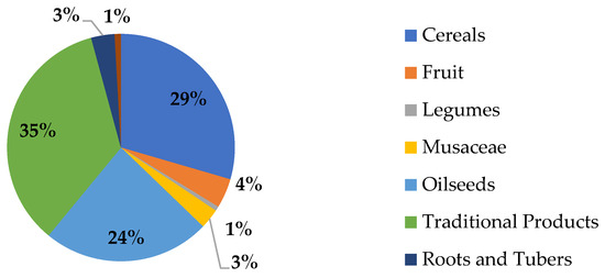 Figure 1 shows the distribution of the energy potential of residual biomass by category. The categories with the highest energy potential are residues of traditional products, reaching 35%, cereal residues at 29%, and oilseed residues at 24%.