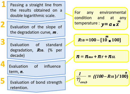 This reduction can be extrapolated from each individual degradation line (iv) in the sixth step, the influence term “n” is calculated using Equation (4):