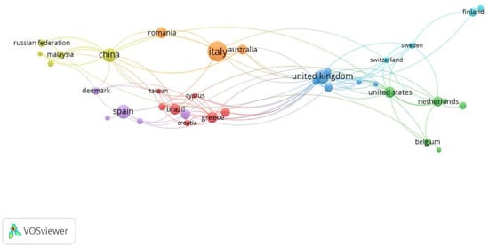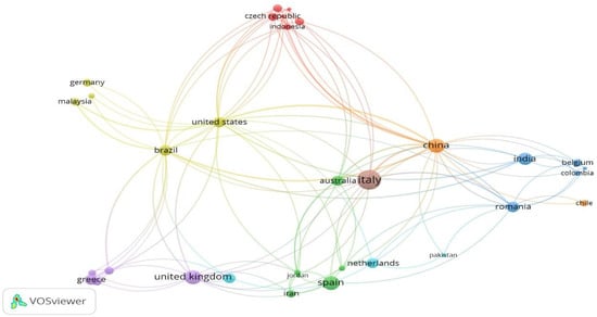 Utilization, Ministry of Education, China, was at the top of this list with two publications, 17 citations, and a network strength of 2289. We can observe some other institutions that are contributing to the field and dominate the coupling and anchor its most significant clusters: Academy of Romanian Scientist, Bucharest, Romania), University of Buffalo (New York, NY, USA), Western New England University (Springfield, MA, USA), Georgia Institute of Technology (Atlanta, GA, USA), Massachusetts Institute of Technology (Cambridge, MA, USA), and Pontifical Catholic University of Paraná, Curitiba, (Paraná, Brazil).