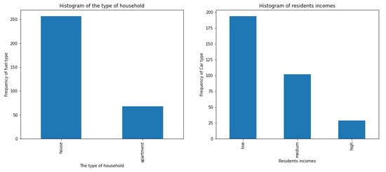 As for categorical data by attributes settlement type (settlement_type), housing type (household_type) and income level of household residents (income_level), based on their analysis, histograms of their number in the obtained sample were constructed (Figure 3).