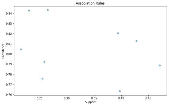 Table 3 contains the characteristics of the association rules that were discovered using the a priori algorithm based on the input data.