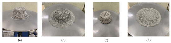 The slump flow of the mortars was measured in accordance with the recommendations of standard EN 1015-3 [34]. The result of the slump flow diameter was established according to the classification of the EN 998-1 standard [35]. Considering the aggregates used in this study, the slump flow diameter was set at 160 ± 10 mm, as most mortars are classified with densities between 600 to 1200 kg/m3.