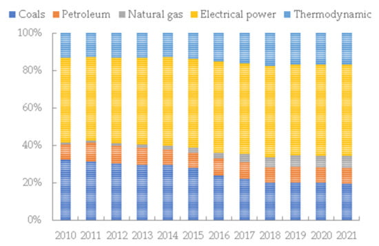Energy consumption structure of high carbon industry in the Zhejiang Province from 2010 to 2021.