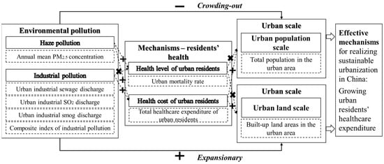 Based on the literature review and hypotheses discussed above, Figure 2 illustrates the relationships among environmental pollution, urban scale, and resident health analyzed in this study.