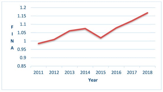 | FINA | 0.213 ** | 0.218 ** | 0.212 ** | 0.205 ** | 0.178 ** | 0.172 ** | 0.175 ** | 0.167 ** |