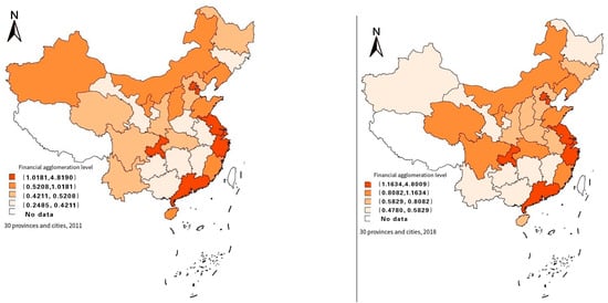 3.2.2. Evaluation and Evolution Characteristics of China’s Financial Agglomeration Level Based on the Measurement Results