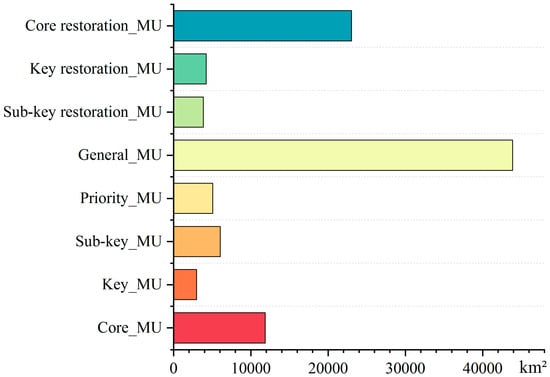 Areas of ecological management zones at the grid scale. MU = management unit—the secondary zones of water ecological management.