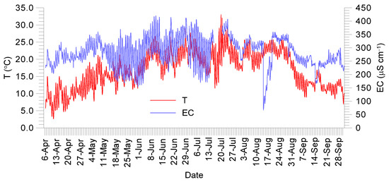EC and temperature in the WR, April–September 2022.