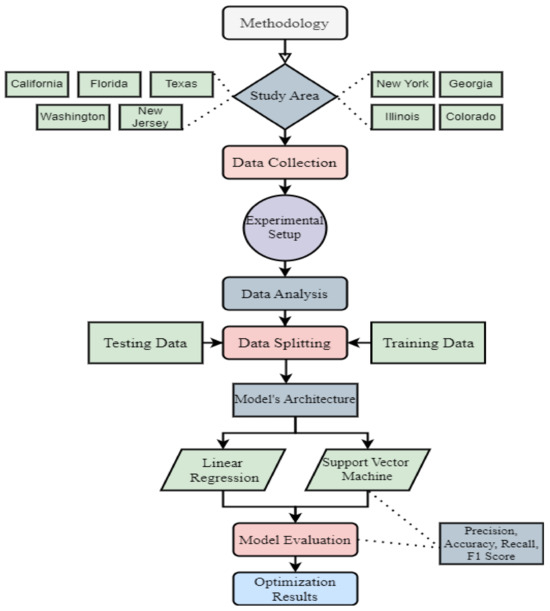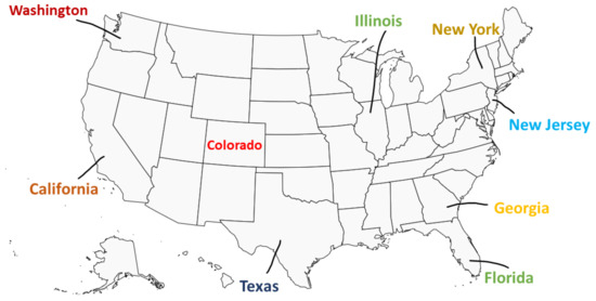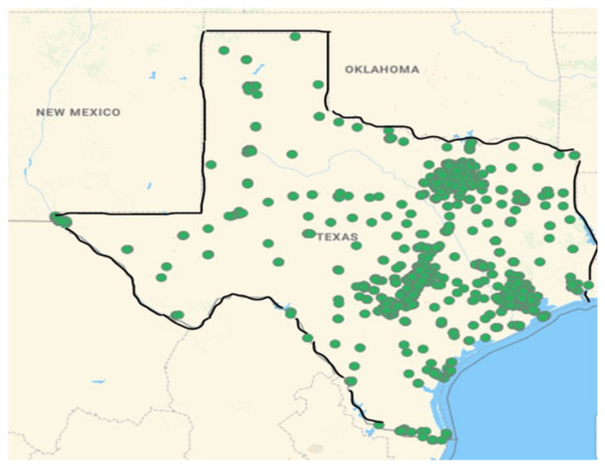 - US Department of Energy (DOE)—Alternative Fuels Data Center (AFDC): This source provides comprehensive data on existing EV charging stations, including their locations, charging capabilities, and usage statistics. Data access: [AFDC Station Locator] (https://afdc.energy.gov/stations/#/analyze) (accessed on 10 Sepetmber 2023).