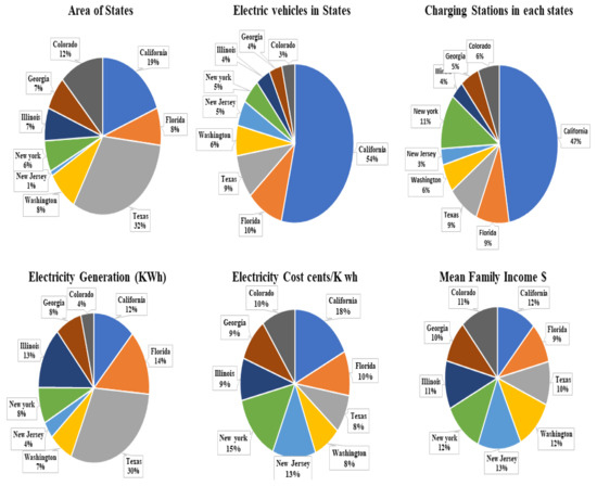 | States | % of Area | % of EVs | % of EVCSs | % of Energy Generation | % of Energy Cost | Mean Family Income |