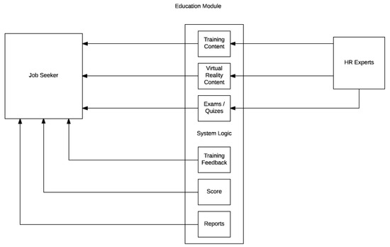 Looking at the job market, it is known that talent is not enough without the desire and commitment to work during the personnel selection process and job interviews. Interviews conducted by human resources also look at how mentally prepared a person is and how good their work ethic is. Kumar et al.’s [8] conducted research on the design and development of an application that automated the human resources interview process. In their study, they noted that every question asked and every answer given was difficult to be represented as perfectly true or completely false and that they could not be encoded. With this technology, virtual reality brings a different perspective to training and interview methods. Accordingly, Çavas et al.’s [9] conducted a study aiming to provide a small amount of information about virtual reality. At the same time, the study aimed to explain how and for what purposes virtual reality is used in education. Virtuality is one of the most interesting layers of reality. In fact, the concept of virtual defines what is real but not concrete. “Virtual reality”, on the other hand, has been described as an alternative world consisting of many computer drawings and involving responding to human reactions [9]. Designs that are modeled in virtual environments can not only be used as images but also in analysis programs. It is important to mention the structures modeled on the computer and the programs that allow the simulation of circulation in space. For this reason, communication between people is provided by the development of virtual models [10]. In addition to being an interactive system for interview management, the systems created in this context build communication channels for multiple customer interactions used by a specific person [11,12]. A case-based lesson planning system used in another study showed that the system input and output were well designed and contributed to case access. During the requirement creation process, all issues related to the construction of the lesson plan were examined to determine the necessary inputs, processes, and outputs in the built system [13].