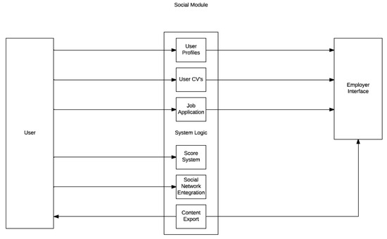 The networked flowchart of the communication between the user and the employer is shown in Figure 4. According to the arrangement in Figure 4, user profile creation and the user’s self-history and job application will be provided through this system and transfer will be possible thanks to its easy integration with social networks.