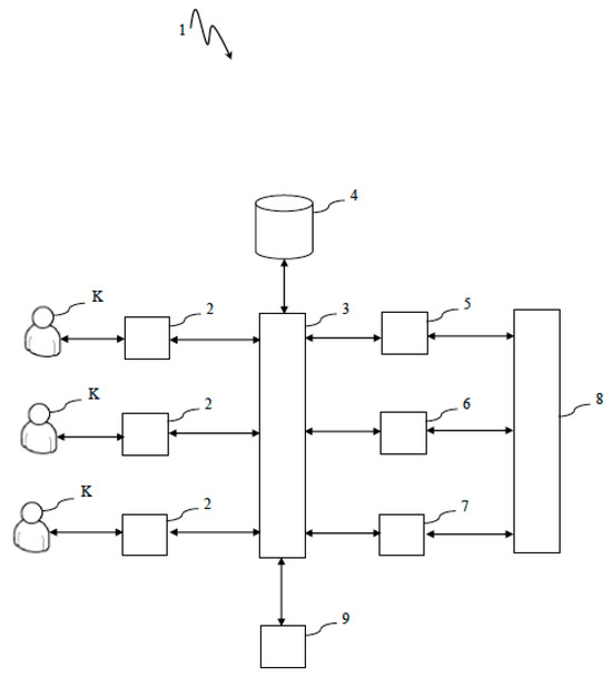If the server (3) creates a request for the user (K) to share the results of the interview on social platforms, it transmits the relevant request to the social media integration unit (9) and directs the response of the social media integration unit (9) to the user interface unit (2).