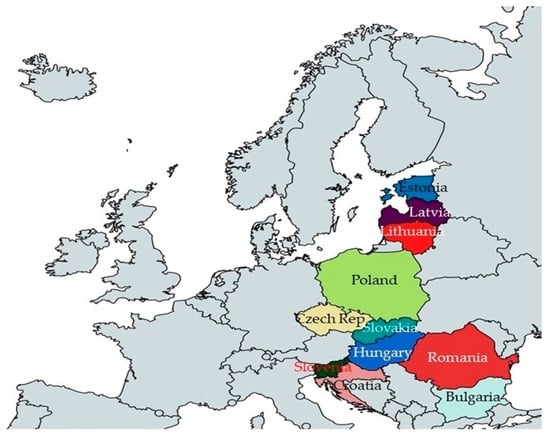 Map of CEECs. Source: created by the authors with mapchart.net (accessed on 28 October 2023).