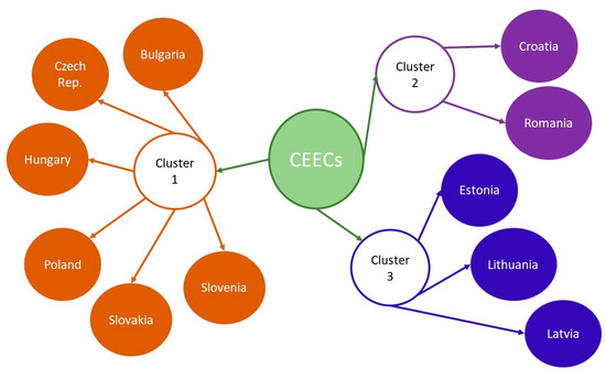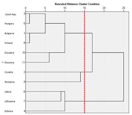 Grouping of CEECs based on a cluster hierarchical analysis. Source: Own processing based on SPSS output.