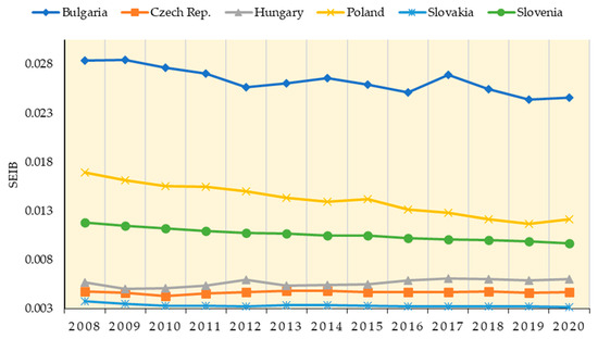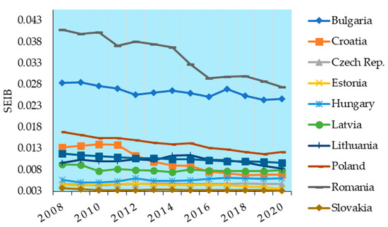 The Romanian SEIB average was twice as high over the observed period as it was for the entire region, but it also showed the group’s most pronounced decreasing tendency. The primary thesis of our research is that the CEECs have great capacity as well as potential for agricultural growth and can contribute eloquently to the advancement of the EU’s bioeconomy [47]. As a result of the findings, Romania, Bulgaria, and Poland have the best agricultural performance among the CEECs overall in terms of the SEIB.
