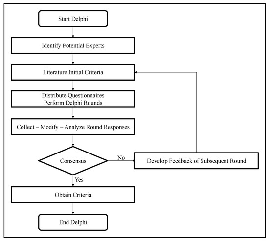 The Delphi technique is a survey method based on expert opinions and characterized by three fundamental features: anonymity in responses, iterative processes with controlled feedback, and collective statistical responses [56]. In this study, the primary aim of employing the Delphi method was to secure dependable and consistent insights from experts. The effectiveness of the Delphi method hinges largely on the degree of dedication that experts invest in planning communication procedures, methodological foundations, and interactive forecasting techniques. The primary objective of utilizing the Delphi method in this study was to gather dependable and consistent expert opinions. The effectiveness of the Delphi method relies heavily on the extent of effort invested by the experts in designing communication procedures, establishing methodological foundations, and engaging in interactive forecasting techniques [57]. Hence, it becomes imperative to carefully choose a panel of experts who possess a deep understanding of the core objectives of the study. Furthermore, this research endeavors to amass additional information pertinent to the research topics and intends to solicit further elucidations on these matters through subsequent questionnaires directed at the experts [58]. In order to establish the evaluation criteria for mitigating the adverse effects of highway automobiles on health and social equity, the Delphi method was employed. The Delphi method involves the iterative collection of expert opinions until a consensus is reached, as depicted in Figure 3. Unlike the conventional approach of brainstorming, where experts convene in one location to arrive at a consensus, the Delphi method mitigates the risk of any single outspoken individual or group exerting undue influence on the outcome by enabling experts to provide their input anonymously [59].