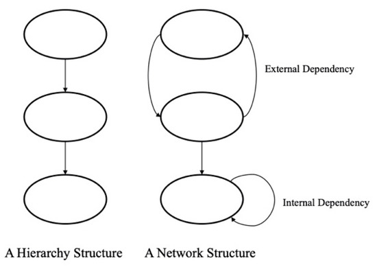The ANP method represents a comprehensive methodology in which all pertinent factors are interlinked within a network structure, accommodating diverse interdependencies. The rationale for employing the ANP methodology in this particular study is substantiated by the intricate and interconnected nature of the highway transportation decision problem under consideration, which encompasses a multitude of both tangible and intangible elements. Moreover, ANP is goal-centric and facilitates the incorporation of feedback loops within the model, enhancing its suitability for the research context [60]. Several indicators influencing highway transportation exhibit interdependence among one another. Furthermore, these indicators demonstrate varying degrees of mutual reliance, making the utilization of ANP modeling an apt choice for addressing the complexities inherent in the research problem at hand (Figure 4).