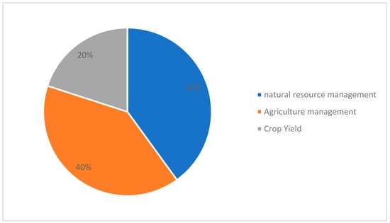 On the other hand, in relation to environmental issues monitored by ICTs and digital tools during the period from 2018 to 2023 (Figure 3), applications have been most frequently used for natural resource management (soil and water management: 40%), as well as agronomic management (fertilizer and agrochemical application: 40%). Additionally, they have been utilized for monitoring overall agricultural production (20%).