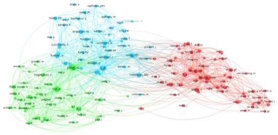 - van Eck, N.J.; Waltman, L. Visualizing Bibliometric Networks. In Measuring Scholarly Impact: Methods and Practice; Ding, Y., Rousseau, R., Wolfram, D., Eds.; Springer International Publishing: Cham, Switzerland, 2014; pp. 285–320. [Google Scholar]