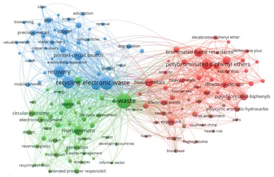 - Cluster 2 (in green)—E-waste management and recycling in developing nations