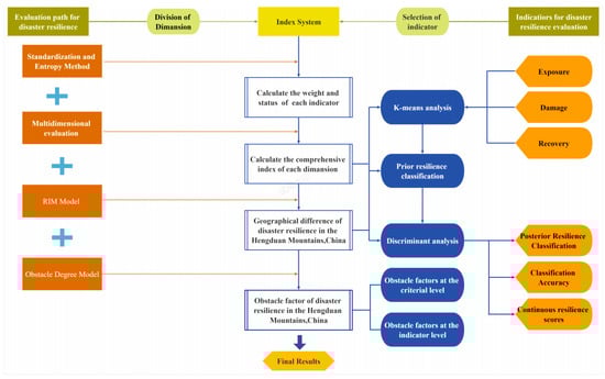 - There were clear differences in the disaster resilience barrier degree of this high-risk area: criterion layer barrier degree, economic barrier degree > ecological barrier degree > social barrier degree > infrastructure barrier degree. From the perspective of the index layer obstacle degree, the main factors affecting the disaster resilience distribution in this high-risk area included topographic relief, proportion of female population, natural growth rate, cultivated land area, industrial structure, number of industrial enterprises above a designated size, gas penetration rate, and drainage pipe density in built-up areas, among others. In addition, according to the difference in the primary obstacle factors, the different regions can be classified into three types: natural environmental obstacle type, economic obstacle type, and population structure obstacle type.
