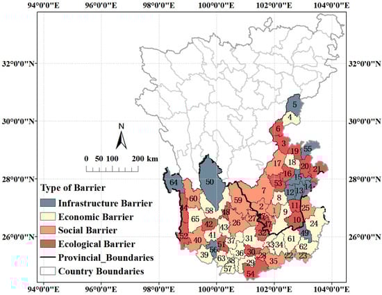 3.2.2. Obstacle Degree Analysis of the Indicator Layer
