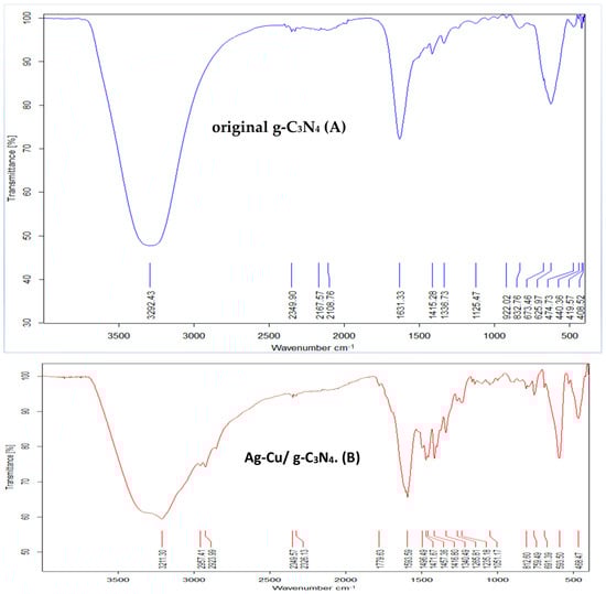 2.5. Characterization of g-C3N4 and Ag-Cu/g-C3N4 Catalysts
