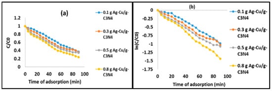 - Tao, S.; Jiang, H.-Y.; Ma, C.-C.; Mao, F.; Xue, B. Ag/g-C3N4 photocatalysts: Microwave-assisted synthesis and enhanced visible-light photocatalytic activity. Catal. Commun. 2016, 79, 45–48. [Google Scholar]