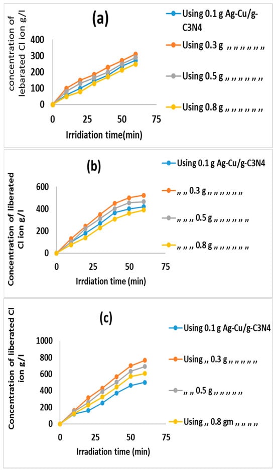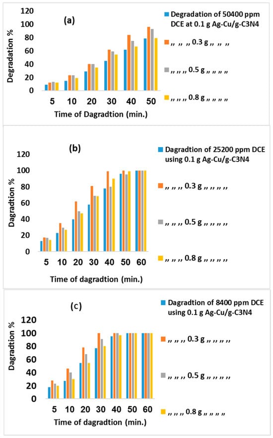 | Weight of Ag-Cu/g-C3N4/100 mL | ||||||||