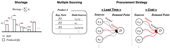 The illustration of the three important concepts: shortage, multiple sourcing and procurement strategy.