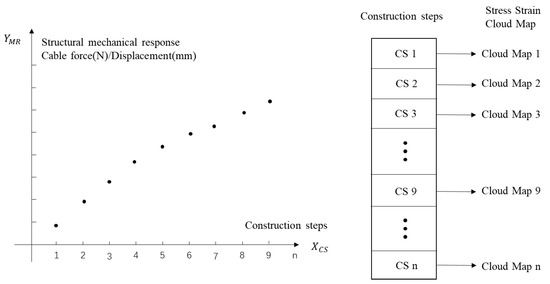 where f represents the mapping relationship between the construction step and the mechanical response, represents the divided construction step, and represents the result of the variation in the structural mechanical response with the construction step.