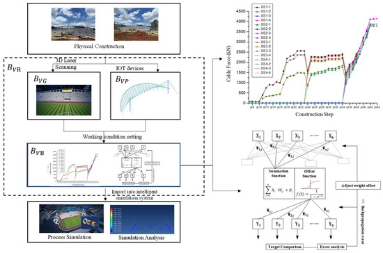 The traditional construction analysis model’s lack of synergy and interactivity with on-site processes has hindered the level of sophistication achievable in the construction of cable structures. However, the emergence of DT technology in the construction domain presents an opportunity to enhance the intelligence of cable structure construction processes. By leveraging the DT to gather mechanical response data for each construction step and conducting dynamic analysis at each stage, it is theoretically possible to achieve continuous dynamic analyses throughout the cable structure’s construction phase.