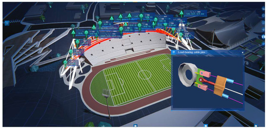 The continuous dynamic analysis method adopted by this system has furnished both theoretical and methodological foundations for the management and control of the cable structure’s subsequent construction phases. By enabling real-time monitoring, comparison with simulation data, and identification of safety concerns, the intelligent simulation system contributes to enhancing construction safety, quality, and decision making throughout the cable structure’s construction process.
