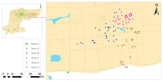 In this paper, the data for longitude, latitude, position, speed, time, and state of collection vehicles at 98 waste collection points in 63 communities of the city are analyzed. The application of spatial clustering techniques efficiently partitions the 98 waste collection points into five distinct sub-areas (as shown in Figure 3). This subdivision facilitates the strategic deployment of multiple collection vehicles concurrently operating across diverse regions, yielding heightened operational efficiency and substantial cost reductions.