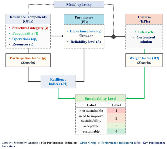 The flowchart of the applied methodology for resilience- and sustainability-index assessment.