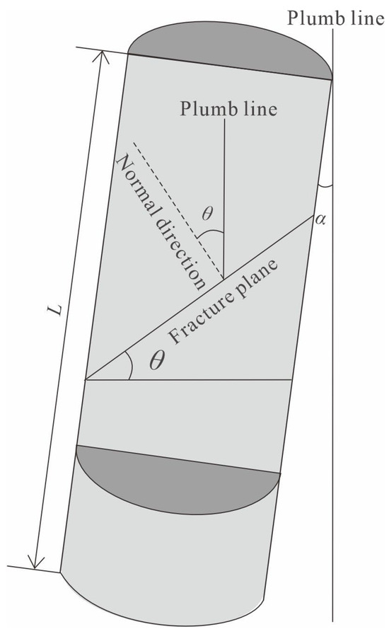 Schematic diagram of calculation model of fracture linear density. L refers to the core length in statistics (m), θ is the dip angle of fractures (°), and α is well deviation angle.