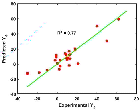 Figure 8a–d shows the validation indicator plots for the model and Figure 9 shows the comparison of the fit to the experimental values of Y4.