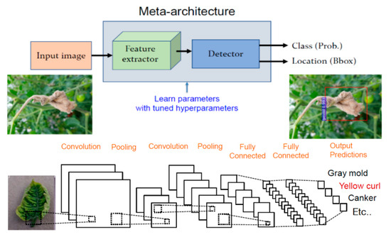 - Fuentes, A.; Yoon, S.; Kim, S.C.; Park, D.S. A robust deep-learning-based detector for real-time tomato plant diseases and pests recognition. Sensors 2017, 17, 2022. [Google Scholar] [CrossRef]
