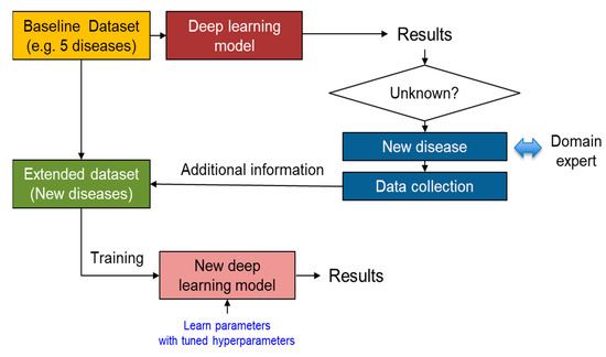 - When data are identified as “unknown” by the model, the system can adapt to new diseases with the support of domain experts. Subsequently, more data corresponding to the new disease needs to be collected.
