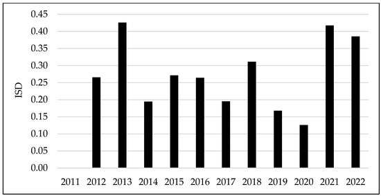 - The medium-performance category, with ISD values from 0.1921 to 0.3120, included 2012, 2014, 2015, 2016, 2017, and 2018;
