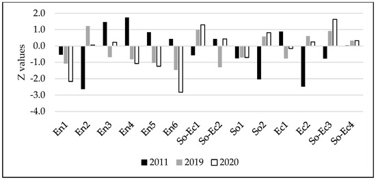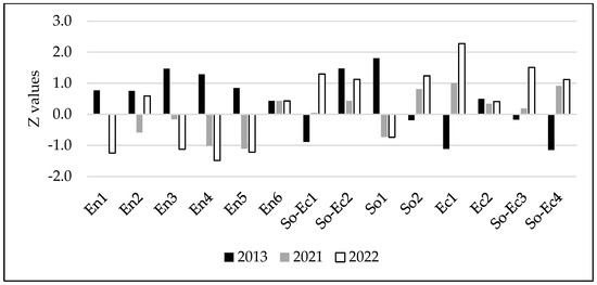 Data from 2011 to 2022 were used to construct the ISD. In particular, the dataset consisted of 14 variables belonging to three pillars: environmental (En), economic (Ec), and social (So). However, four of these variables could be classified as socioeconomic pillars (So-Ec).