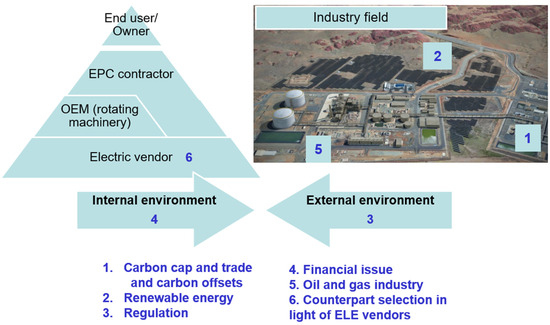 As for the O&G industry, perhaps due to its conservative and reclusive nature, a broad range of review literature was not available. Some scholars completed qualitative analysis based on research surveys and questionnaires, etc., and conducted quantitative analysis based on these results. One surprising issue was the dearth of literature relating to ELE vendors in the O&G industry, even though they are among the main drivers of this industry. As can be seen in Section 2.6, the majority of discussion focuses on bulk materials rather than critical electric components, so future studies may choose to analyze how greening of the environment can be achieved through the deployment of emerging technologies by counterpart such as ELE vendors, etc., in the O&G industry. As observed by many scholars, the O&G industry is extremely complex in its production processes and supply chain, so it is very important to take a holistic and comprehensive view of the industry quantitatively and to consider future trends also in terms of technical points of view to identify how much ELE vendors can contribute toward decarbonization. Some limitations of the study include the availability of detailed studies and data on O&G businesses, due to their conservative and reclusive nature. Also, this research considered the ELE vendors as a priority, excluding other aspects including licensed process products, or JV counterparts of EPC, system integrators, or rotating machinery OEM manufacturers, etc. To increase the possibility of drawing conclusions from the literature review and proving distinct causalities, the linkages between these topics need to be investigated utilizing real-world case studies and longitudinal studies, which employ quantitative methods.